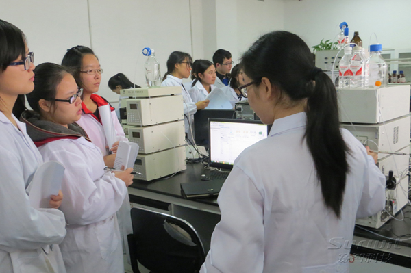 每年前來參觀和實(shí)訓(xùn)的都是新一屆的同學(xué),對(duì)賽智科技來說也是一個(gè)宣傳和推廣的機(jī)會(huì)。為此,我們市場(chǎng)部和技術(shù)服務(wù)部的同事做了精心的安排。布置了會(huì)議室,組織同學(xué)們觀看賽智宣傳PPT,專門安排人員講解液相色譜的基礎(chǔ)知識(shí),播放公司產(chǎn)品視頻,讓同學(xué)能更好的了解賽智科技,了解液相產(chǎn)品。在實(shí)驗(yàn)室,技術(shù)部同事開啟儀器,手把手得教同學(xué)們進(jìn)行液相操作的全過程。