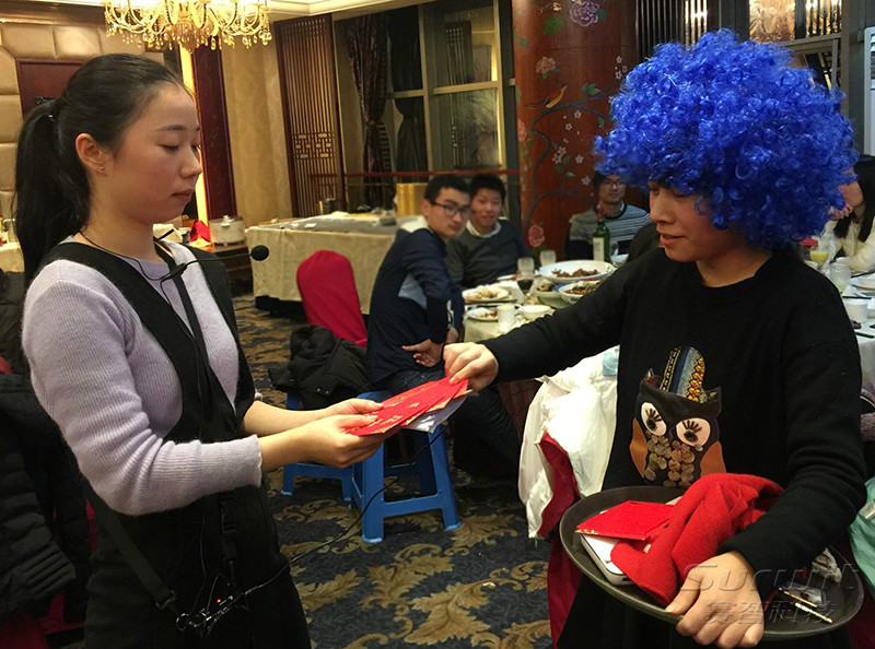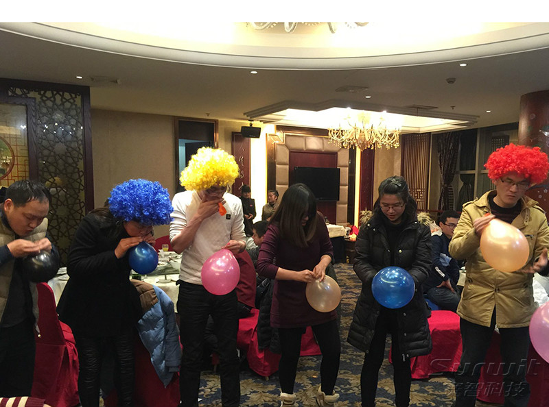 年夜飯席間,市場(chǎng)部精心準(zhǔn)備了不少小游戲。有吹牛皮比賽、尋寶gogogo、幸運(yùn)桌桌樂(lè).......再加上微信紅包雨,讓賽智的小伙伴們,玩得開(kāi)心,嗨到盡興!特別是最后的自拍合影,小伙伴們一起嘟嘴,翻白眼,舉杯露笑臉,連平時(shí)不茍言笑的同事也是萌萌噠!