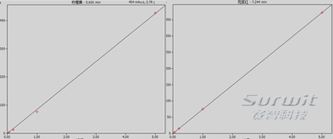 檸檬黃、莧菜紅、胭脂紅、日落黃、亮藍的線性都達到0.999以上